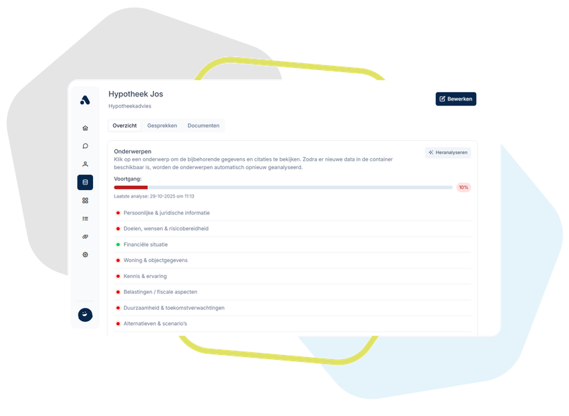 - Ingebouwde workflows: hypotheken, claims en adviesdossiers